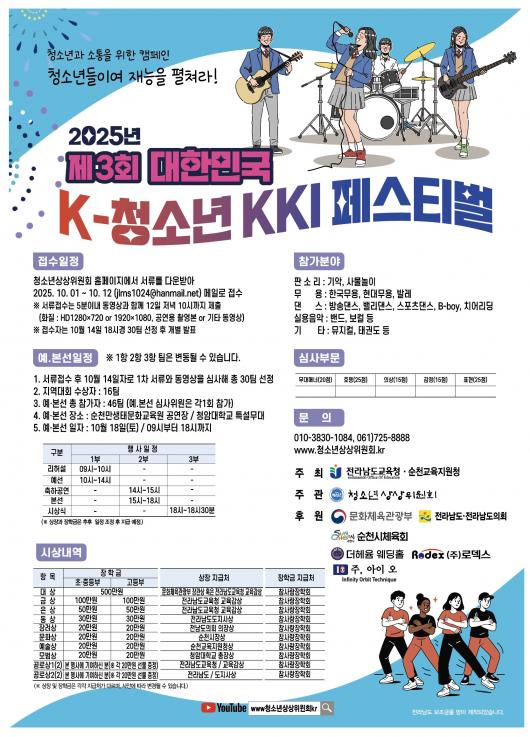[¹®È/Àü³² ¼øÃµ]Á¤¼øÀ̱âÀÚ = û¼Ò³â»ó»óÀ§¿øÈ¸(´ëȸÀå ÀÌ»ó´ë)°¡ °³ÃÖÇÏ´Â ¡°2025³â Á¦3ȸ ´ëÇѹα¹ K-û¼Ò³â ³¢ Æä½ºÆ¼¹ú¡±¸¦ ¿À´Â 10¿ù18ÀÏ(Åä) ¿ÀÀü 10½ÃºÎÅÍ 18½Ã±îÁö ¼øÃµ¸¸»ýŹ®È±³À°¿ø °ø¿¬Àå¿¡¼ ÆîÃÄÁø´Ù°í ÀüÇß´Ù.