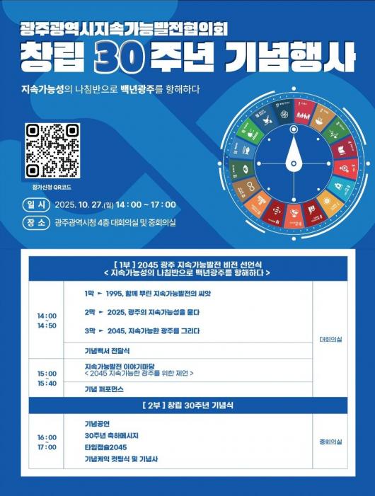 ±¤ÁÖÁö¼Ó°¡´É¹ßÀüÇùÀÇȸ´Â Áö³ 1995³â ¡®Çª¸¥±¤ÁÖ21ÇùÀÇȸ¡¯·Î Ãâ¹üÇÑ ÀÌ·¡ 30³â°£ ÇàÁ¤¡¤»çȸ¡¤½Ã¹Î¡¤±â¾÷ µîÀÌ Âü¿©ÇÏ´Â Áö¿ª ´ëÇ¥ ¹Î¡¤°üÇùÄ¡(°Å¹ö³Í½º) Á¶Á÷À¸·Î ÀÚ¸®¸Å±èÇϸç Áö¼Ó°¡´É¹ßÀü °¡Ä¡ ½ÇÇö¿¡ ±â¿©ÇؿԴÙ.