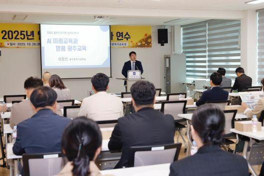ƯÈ÷ ÀÌÁ¤¼± ±³À°°¨Àº ¡®AI¹Ì·¡±³À°°ú ¸íǰ ±¤ÁÖ±³À°¡¯ Ư°À» ÅëÇØ ±¤ÁÖ±³À°ÀÇ ¹Ì·¡ ºñÀü°ú AI ±â¹Ý ±³À°Çõ½Å Àü·«À» Á¦½ÃÇß´Ù. ÀÌ¾î ¸®´õ°¡ Á¶Á÷ ±¸¼º¿øµé°ú È¿°úÀûÀ¸·Î ¼ÒÅëÇÏ°í °ø°¨ÇÏ´Â ±â¼úÀ» °øÀ¯ÇϰíÀÚ ¡¯¸¶À½À» ¿òÁ÷ÀÌ´Â ¸®´õÀÇ ¼ÒÅë ¾ð¾î¡® ÁÖÁ¦·Î °Àǰ¡ ÁøÇàµÆ´Ù.