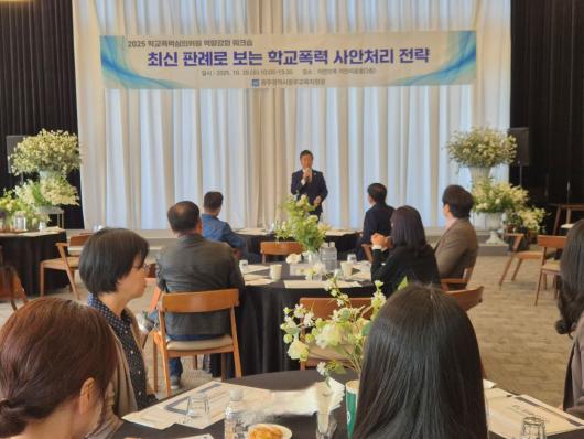 ¿¬¼ö´Â ¹ý¹«¹ýÀÎ ·ÎÈ÷¾î ±è¼öÁö º¯È£»ç°¡ ¡®ÃֽŠÆÇ·Ê·Î º¸´Â Çб³Æø·Â »ç¾Èó¸® Àü·«¡¯À» ÁÖÁ¦·Î °¿¬À» ÁøÇàÇϰí, ÀÌ¾î ¼ÒÅëÀÇ ½Ã°£À» °®´Â ¼øÀ¸·Î ÁøÇàµÆ´Ù.