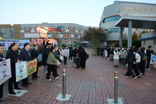 [¹«¾È/»çȸ]¹®±Ù¹Ì ±âÀÚ = Àü³² ¹«¾È±º(±º¼ö ±è»ê)Àº 13ÀÏ 2026Çг⵵ ´ëÇмöÇдɷ½ÃÇèÀ» ¸Â¾Æ ¹«¾È°íµîÇб³ µî °ü³» ¼ö´É °í»çÀå ¾Õ¿¡¼ ¡®±æ°Å¸® ¼ö´ÉÀÀ¿ø¡¯À» ÁøÇàÇß´Ù.