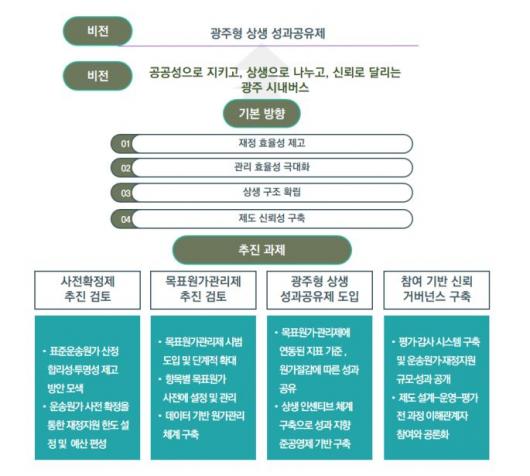 ❍ ¶ÇÇÑ ¡âµµ½Ãöµµ-½Ã³»¹ö½º °£ ¿¬°è ³×Æ®¿öÅ© ±¸Ãà ¡âµµ½Ãöµµ °³Åë ÈÄ ÀûÁ¤ ¹ö½º ´ë¼ö »êÁ¤ ¡â¸¶À»¹ö½º¡¤±¤¿ª¹ö½º µî ±â´Éü°è ÀçÁ¤¸³ ¡â±¤ÁÖÇü ¿ä±Ý Á¶Á¤ Á¤·ÊÁ¦ µµÀÔ ¡â¹ö½ºÀü¿ëÂ÷¼± ¿î¿µ °³¼± µî ¹ßÀü¹æ¾Èµµ Á¦½ÃµÆ´Ù.