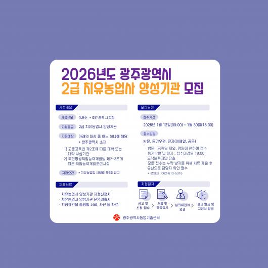 [±¤ÁÖ/»çȸ]¹®±Ù¹Ì ±âÀÚ = ±¤ÁÖ±¤¿ª½Ã ³ó¾÷±â¼ú¼¾ÅÍ´Â 12ÀϺÎÅÍ 30ÀϱîÁö ¡®2±Þ Ä¡À¯³ó¾÷»ç ¾ç¼º±â°ü¡¯ ÁöÁ¤À» À§ÇÑ ½ÅûÀ» ¹Þ´Â´Ù.