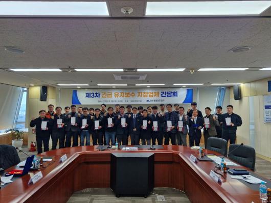 °£´ãȸ¿¡´Â 26°³ Çù·Â±â¾÷ ´ëÇ¥ µî ¾à 40¿© ¸íÀÌ Âü¼®ÇßÀ¸¸ç, °ø»ç´Â À̹ø °£´ãȸ¸¦ ÅëÇØ ºÎµÎ ÃâÀÔ ÀýÂ÷, º¸À̽ºÇÇ½Ì ¿¹¹æ, ÇöÀå ¾ÈÀü°ü¸® µî ±ä±ÞÀ¯Áöº¸¼ö ¼öÇà ½Ã À¯ÀÇ»çÇ×À» ¾È³»Çϰí, È¿À²ÀûÀÎ ½Ã¼³¹° º¸¼ö¹æ¾È ¸¶·Ã¿¡ ´ëÇÑ ÀǰßÀ» °øÀ¯ÇÏ´Â ½Ã°£À» °¡Á³´Ù.