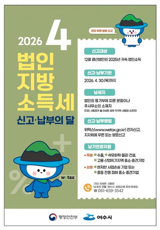 [¿©¼ö/»çȸ]Á¤¼øÀÌ ±âÀÚ = ¿©¼ö½Ã´Â 4¿ù ÇÑ ´Þ°£ ¡®2025³â ±Í¼Ó ¹ýÀÎÁö¹æ¼Òµæ¼¼¿¡ ´ëÇÑ ÁýÁß ½Å°í¡¤³³ºÎ ±â°£¡¯À» ¿î¿µÇÑ´Ù°í ¹àÇû´Ù.