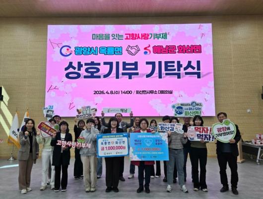 À̳¯ ±âŹ½Ä¿¡´Â ±¤¾ç½Ã ¿Á·æ¸éÀå°ú ÇØ³²±º È»ê¸éÀåÀ» ºñ·ÔÇÑ Âü¿© °øÁ÷ÀÚµéÀÌ ÇÔ²²ÇßÀ¸¸ç, ¾ç ±â°ü ¼Ò¼Ó °øÁ÷ÀÚ 10¸íÀÌ ÀÚ¹ßÀûÀ¸·Î Âü¿©ÇØ ¼·ÎÀÇ Áö¿ª¿¡ °¢ 100¸¸ ¿ø¾¿ ±âºÎÇß´Ù. ÀÌ¾î °íÇâ»ç¶û±âºÎÁ¦ÀÇ ÃëÁö¸¦ °øÀ¯ÇÏ°í µÎ Áö¿ªÀÇ Çù·Â ÀÇÁö¸¦ ´ÙÁ³´Ù.