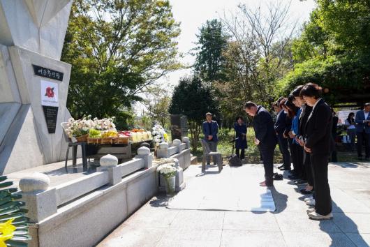 À̳¯ °Çü±¸ ÀÇÀåµµ Âü¼®ÇÏ¿© ¿©¼øÆ¯À§ À§¿øµé°ú ÇÔ²² ¿©¼øÇ×Àïž ¾Õ¿¡¼ ÇåÈ¿Í ¹¬³äÀ» ÁøÇàÇϰí, Èñ»ýµÈ À̵éÀÇ ³ÌÀ» ±â¸®¸ç ¿ª»çÀû ¾ÆÇÄÀ» µÇ»õ°å´Ù.