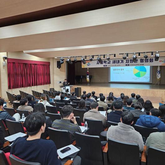À̹ø ÇùÀÇȸ´Â Áö³ 3ÀϺÎÅÍ ½ÃÇà ÁßÀÎ ¡®»ç¸³Çб³ »õ³»±â »ç¹«Á÷¿ø ¿ª·® °È Áö¿ø°èȹ(»ç¡¤ÇС¤µ¿¡¤Çà »ç¾÷)¡¯ÀÇ ÇÙ½É »ç¾÷ÀÎ »õ³»±â Áö¿ø´Ü ¿î¿µ ¹æÇ⠾ȳ» ¹× ÇöÀå ÀÇ°ß ¼ö·ÅÀ» À§ÇØ ¸¶·ÃµÆ´Ù.