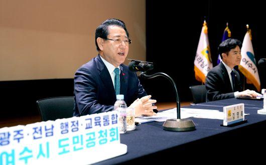 °øÃ»È¸¿¡¼± ¿©¼ö¡¤±¤¾ç Áö¿ª µµ¹ÎÀ» ´ë»óÀ¸·Î ±è¿µ·Ï Àü³²µµÁö»ç°¡ ±¤ÁÖ¡¤Àü³² ÇàÁ¤ÅëÇÕ ÃßÁø ¹è°æ°ú Á¤Ã¥ ¹æÇâÀ» ¼³¸íÇϰí, »ê¾÷¡¤ÀÏÀÚ¸®¡¤±ÕÇü¹ßÀü µî µ¿ºÎ±Ç Áö¿ª Çö¾È¿¡ ´ëÇÑ ÀǰßÀ» ûÃëÇß´Ù.