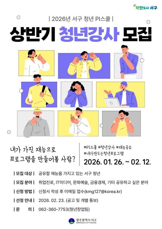 ¸ðÁý ±â°£Àº ¿À´Â 2¿ù12ÀϱîÁöÀ̸ç Âü¿©¸¦ Èñ¸ÁÇϴ û³âÀº ¼±¸Ã» ´©¸®Áý °í½Ã°ø°í¶õÀÇ °ü·Ã ¼·ù¸¦ ÁغñÇØ ÀüÀÚ¿ìÆíÀ¸·Î Á¦ÃâÇÏ¸é µÈ´Ù. ÀÚ¼¼ÇÑ ³»¿ëÀº ¼±¸Ã» ÀÏÀÚ¸®Ã»³âÁö¿ø°ú·Î ¹®ÀÇÇÏ¸é µÈ´Ù.