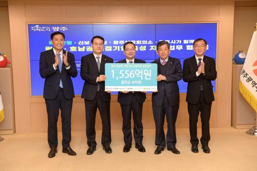 [±¤ÁÖ/»çȸ]¹®±Ù¹Ì ±âÀÚ = ±¤ÁÖ±¤¿ª½Ã(½ÃÀå °±âÁ¤)´Â 16ÀÏ ½Ãû ºñÁî´Ï½º·ë¿¡¼ ÇϳªÀºÇà, ±¤ÁÖ»ó°øÈ¸ÀǼÒ, ½Å¿ëº¸Áõ±â±Ý, ±â¼úº¸Áõ±â±Ý°ú ÇÔ²² Áö¿ª Áß¼Ò±â¾÷ À¶ÀÚ Áö¿øÀ» ³»¿ëÀ¸·Î ÇÏ´Â ¡®±¤ÁÖ¡¤È£³²±Ç °ÅÁ¡±â¾÷ À°¼º Áö¿ø ¾÷¹«Çù¾à¡¯À» ü°áÇß´Ù.