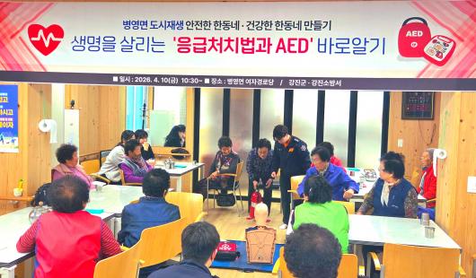 °Áø±ºÀÌ Áö³ 10ÀÏ, º´¿µ¸é ¿©ÀÚ°æ·Î´ç(Ä¿¹Â´ÏƼÄÉ¾î »ç¶û¹æ)¿¡¼ 30¿© ¸íÀÇ ¾î¸£½Å°ú Àα٠ÁֹεéÀ» ´ë»óÀ¸·Î ÀÚµ¿½ÉÀåÃæ°Ý±â(AED) »ç¿ë¹ý ±³À°À» ½Ç½ÃÇß´Ù. À̹ø ±³À°Àº °Áø¼Ò¹æ¼¿Í ¿¬°èÇÏ¿© ¼Ò¹æ´ë¿øÀÌ Á÷Á¢ ½Ã¿¬Çϰí ÁöµµÇÏ´Â ¹æ½ÄÀ¸·Î ÁøÇàµÆÀ¸¸ç, ÁֹεéÀÌ ¸¶À»¿¡ ºñÄ¡µÈ Àåºñ¸¦ À§±Þ »óȲ¿¡¼ Á÷Á¢ Ȱ¿ëÇØ ÀÌ¿ôÀÇ ¾ÈÀüÀ» Áöų ¼ö ÀÖµµ·Ï µ½±â À§ÇØ ¸¶·ÃµÆ´Ù.