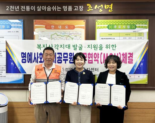 [º¸¼º/»çȸ]¹®±Ù¹Ì ±âÀÚ = º¸¼º±º Á¶¼º¸éÀº Áö³ 27ÀÏ Á¶¼º¸éÇàÁ¤º¹Áö¼¾ÅÍ¿¡¼ Áö¿ª ³» À§±â°¡±¸ ¹ß±¼ ¹× ÃÎÃÎÇÑ º¹Áö ¾ÈÀü¸Á ±¸ÃàÀ» À§ÇØ¡®¸í¿¹»çȸº¹Áö°ø¹«¿ø È®´ë À§ÃË ¹× º¹Áö»ç°¢Áö´ë ¹ß±¼ ¾÷¹«Çù¾à¡¯À» ü°áÇß´Ù°í ¹àÇû´Ù.