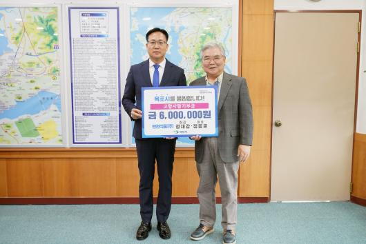[¸ñÆ÷/»çȸ]¹®±Ù¹Ì ±âÀÚ = ¸ñÆ÷½Ã´Â Áö³ 27ÀÏ ¸¸Àü½Äǰ Á¤Àç° È¸ÀåÀÌ ½Ã¸¦ ¹æ¹®ÇØ °íÇâ»ç¶û±âºÎ±Ý 600¸¸ ¿øÀ» ±âŹÇß´Ù°í ¹àÇû´Ù.